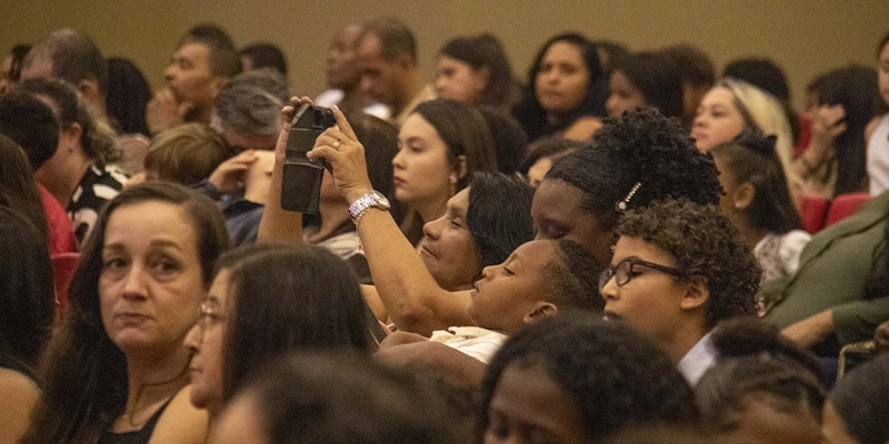 O evento reuniu autoridades municipais, entre elas o prefeito Luciano Muniz e o secretário de Educação e Inovação, Luciano Marins, além de representantes da gestão pública, educadores, estudantes e convidados.